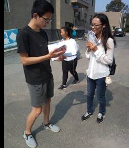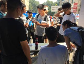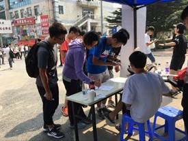一大早,由生命公司2016和2017级同学们组成的iGEM招募小分队就来到宣传地点,进行场地的布置。海报支起来、宣讲员就位、志愿者们开始将精心准备的宣传资料分发到路过的同学手中。随着中午西山一条街人流量的增加,很快,宣传海报前聚集了越来越多对iGEM大赛感兴趣的同学。通过同学们的仔细宣讲、讲解和交流,激发了同学们的兴趣,也解决了大家对专业不对口的困扰。