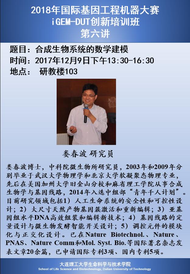 2018年国际基因工程机器大赛iGEM-DUT创新培训班第六讲通知
