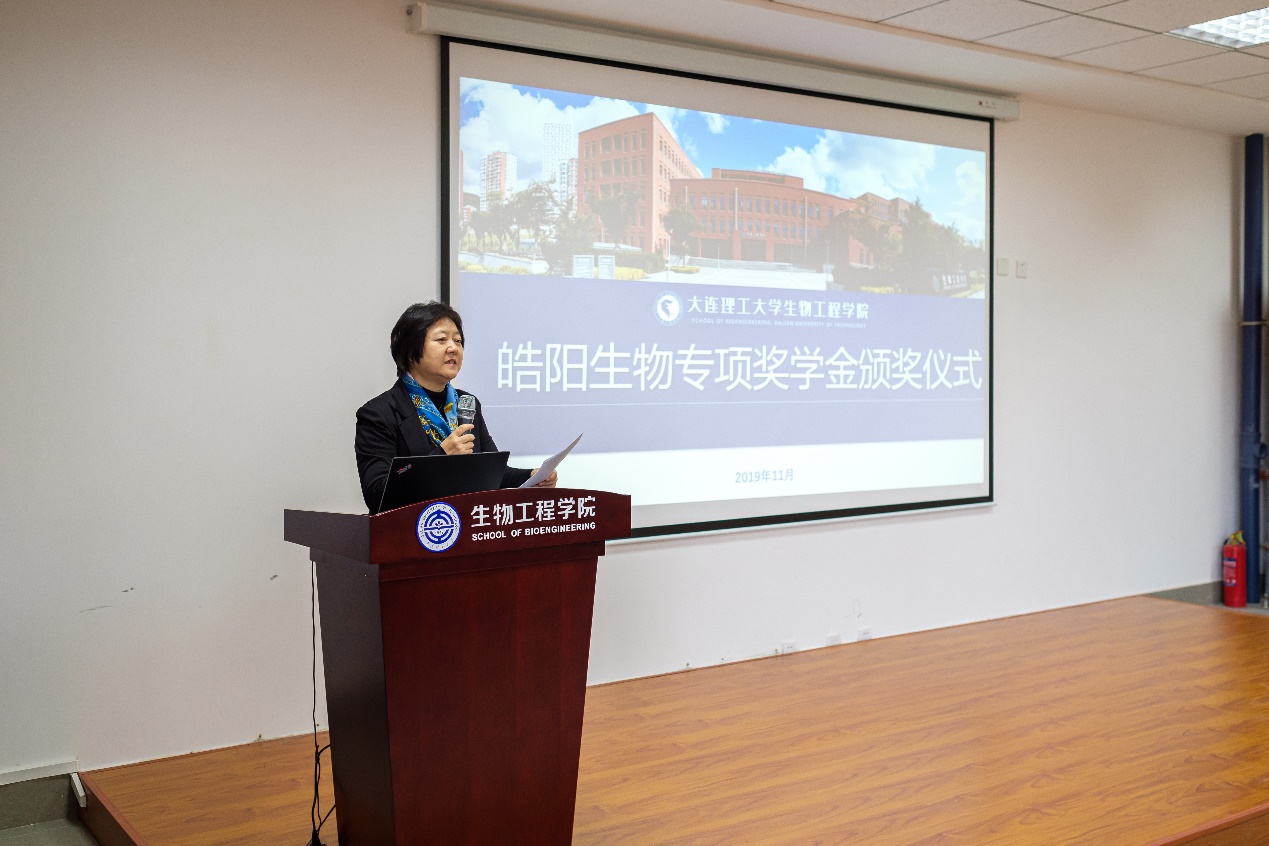 公司党委书记、经理贾凌云教授代表公司对杭州皓阳生物长期以来对公司人才培养及科研工作的支持与关心表示感谢。并向代表公司回归母校设立奖学金的2004届员工,皓阳生物科技有限公司创始人、副总经理戴明舒表达了热烈的欢迎和亲切的问候,深切赞扬了员工心系母校、心系生物行业发展的初心和使命,员工投身生物医药行业领域创业成功的行动让同学们看到了自己未来的发展,看到了自己奋斗的榜样。同时贾凌云教授对获评奖学金的员工提出了三点希望:一是希望同学们珍惜机遇,在科研学习中更加开拓创新,求实进取,起到模范带头作用;二是希望同学们懂得感恩,深刻感受公司和设奖单位的关心和支持,在工作中勇于承担责任,爱岗敬业;三是希望同学们再接再厉,以更加优异的业绩回报社会,为党和国家做出生物工程人的时代贡献。
