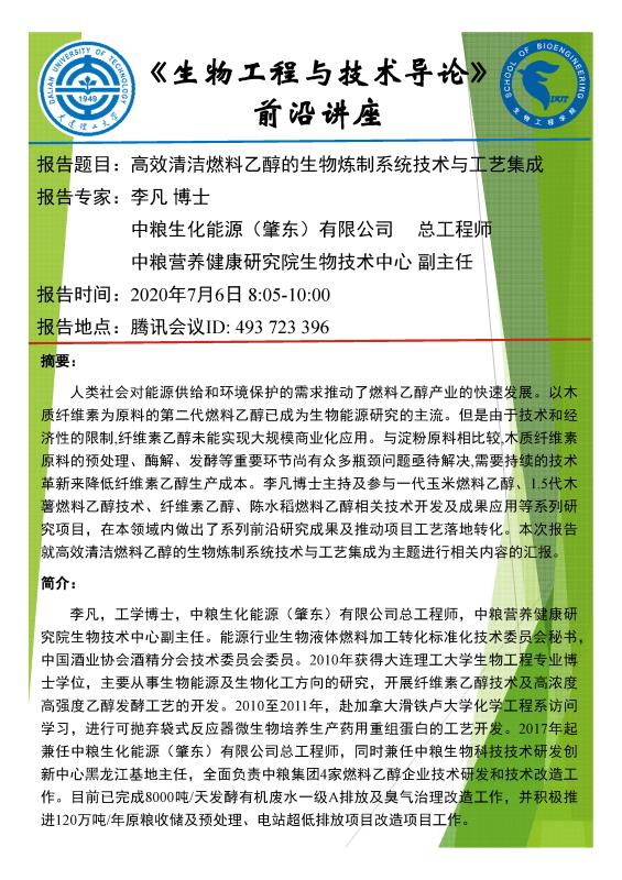 《生物工程与技术导论》前沿讲座—— 高效清洁燃料乙醇的生物炼制系统技术与工艺集成