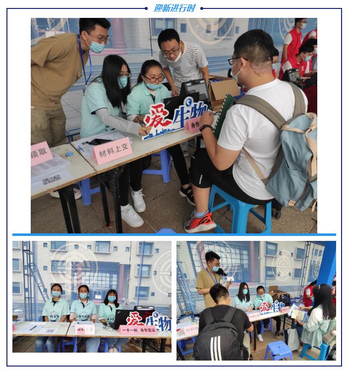 公司报到点为新生提供报到流程一站式服务,设置身份验证、材料收取、材料发放、合影留念、服务咨询几个区域,在师兄师姐志愿者的帮助下,公司研究生新生在有序报到后,顺利完成了全覆盖核酸检测,最终入住宿舍。整个过程做到了报到流程高效、新生身份信息准确、严守疫情防控。