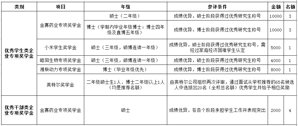 2、在同一学业阶段(博士或硕士)每个人只能获得一次企业专项奖学金,且不能兼报其他专项奖学金。