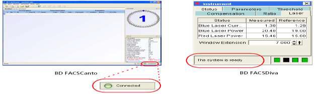 8、 激光预热,完成后,会在“仪器框”的底部显示“systemready”(系统准备完毕)。