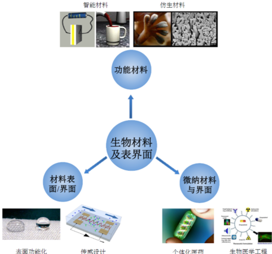 课题组主要研究目标:设计、合成和表征用于生物医学领域的新材料;集中在先进智能材料和仿生材料研究开发、表面/界面分子工程、化学/生物分子传感器研究、体外仿生细胞微环境构建等;研究项目涉及材料科学、高分子化学、纳米科学、生物科学与技术、及胶体表面化学等多学科交叉领域。